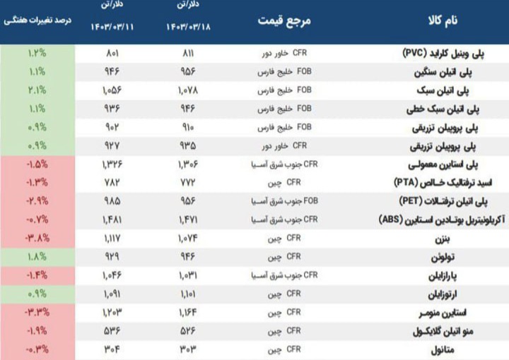 آخرین قیمت های منتشر شده پلتس برای محصولات پتروشیمی