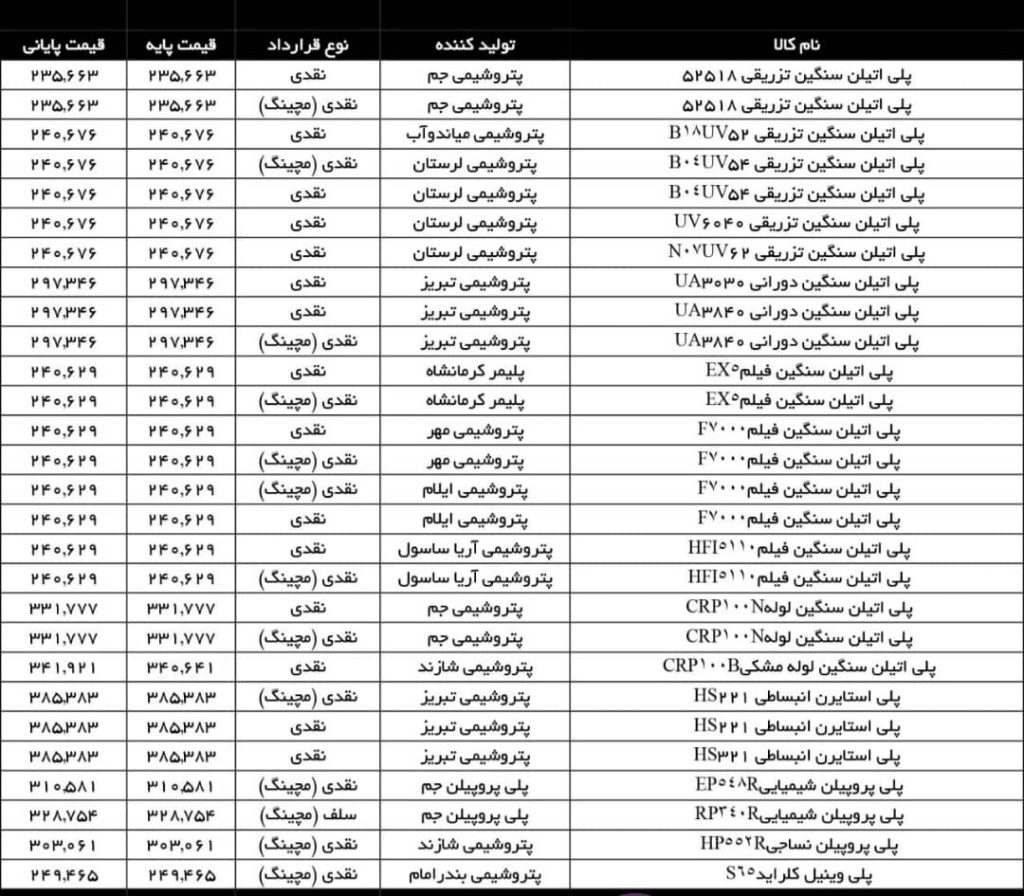 آمار معاملات مواد پلیمری