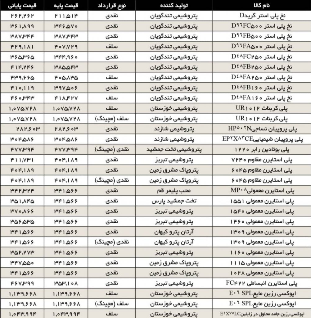 مقایسه قیمت محصولات پایه پتروشیمی