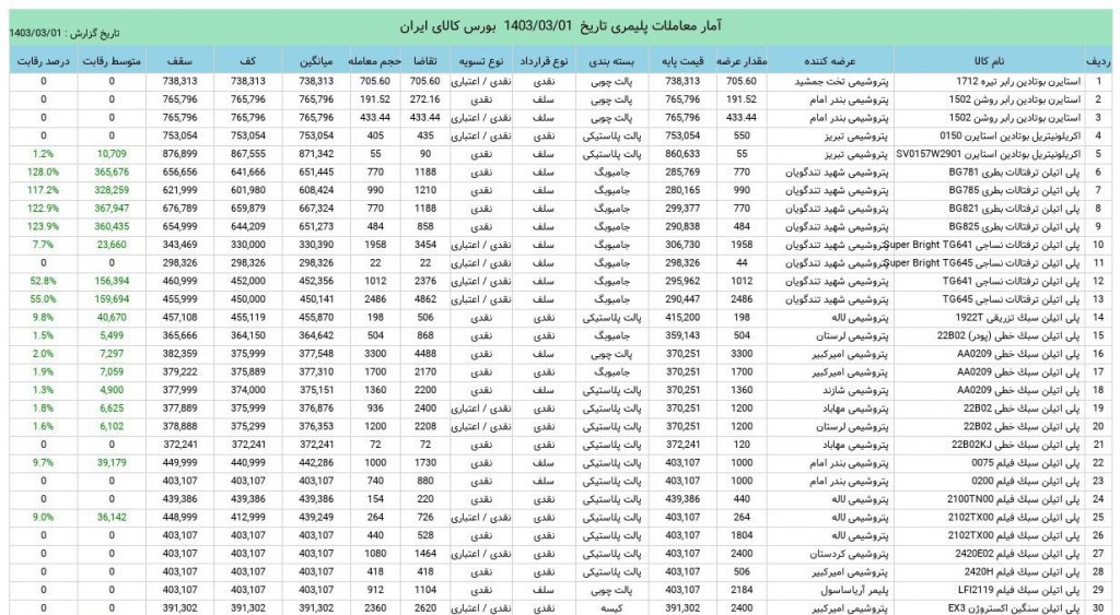 آمار معاملات مواد پلیمری