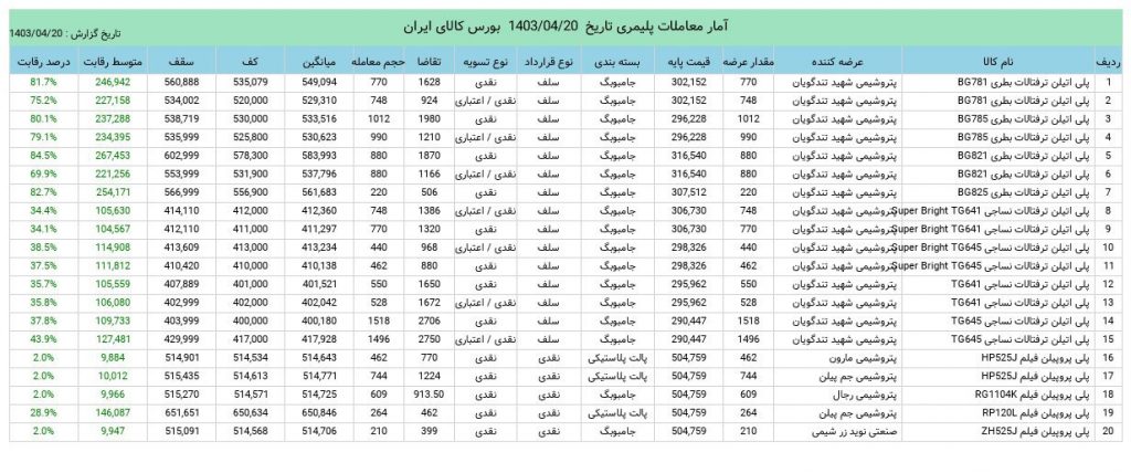آمار معاملات مواد پلیمری