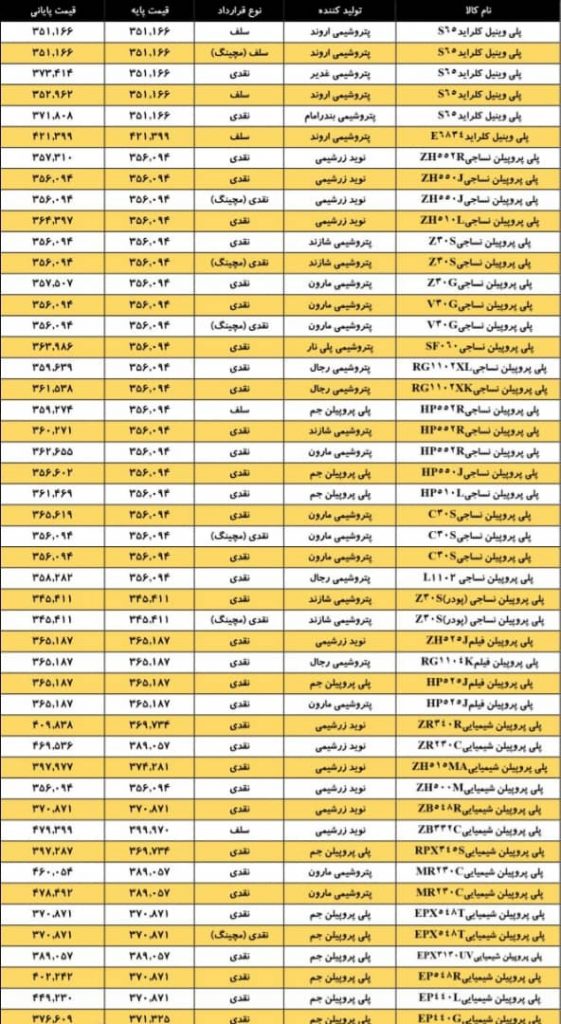 آمار معاملات مواد پلیمری در بورس کالا ۱۵ فروردین ۱۴۰۱
