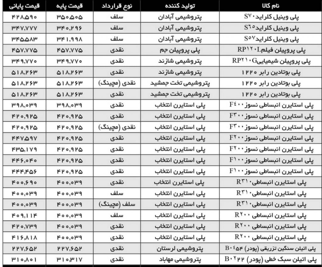 آمار معاملات موا پلیمری در ۱۴۰۱/۳/۲۸