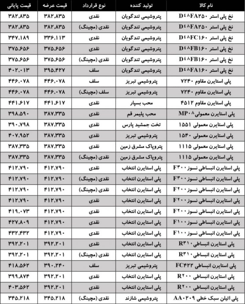 آمار معاملات پلیمر ها در بورس کالا در ۲۸ فروردین ۱۴۰۱