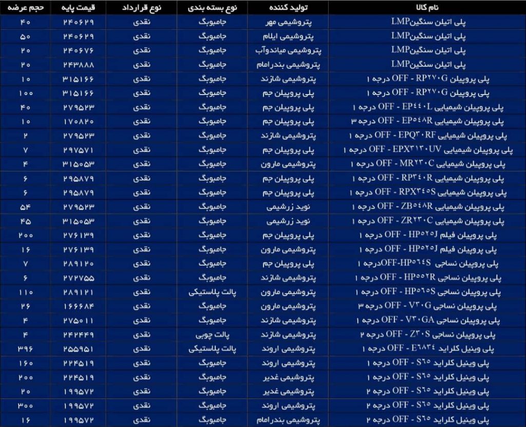 اطلاعیه عرضه مواد پلیمری