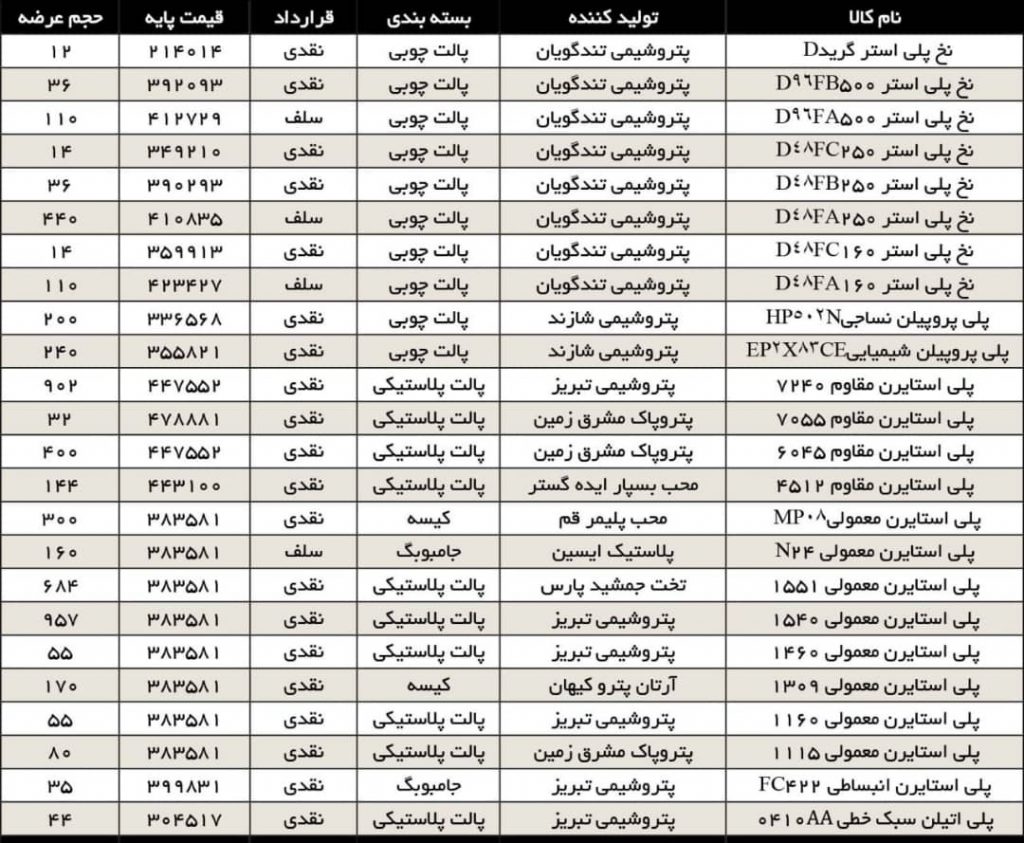 اطلاعیه عرضه مواد پلیمری در بورس کالا در تاریخ ۱۴۰۱/۵/۲