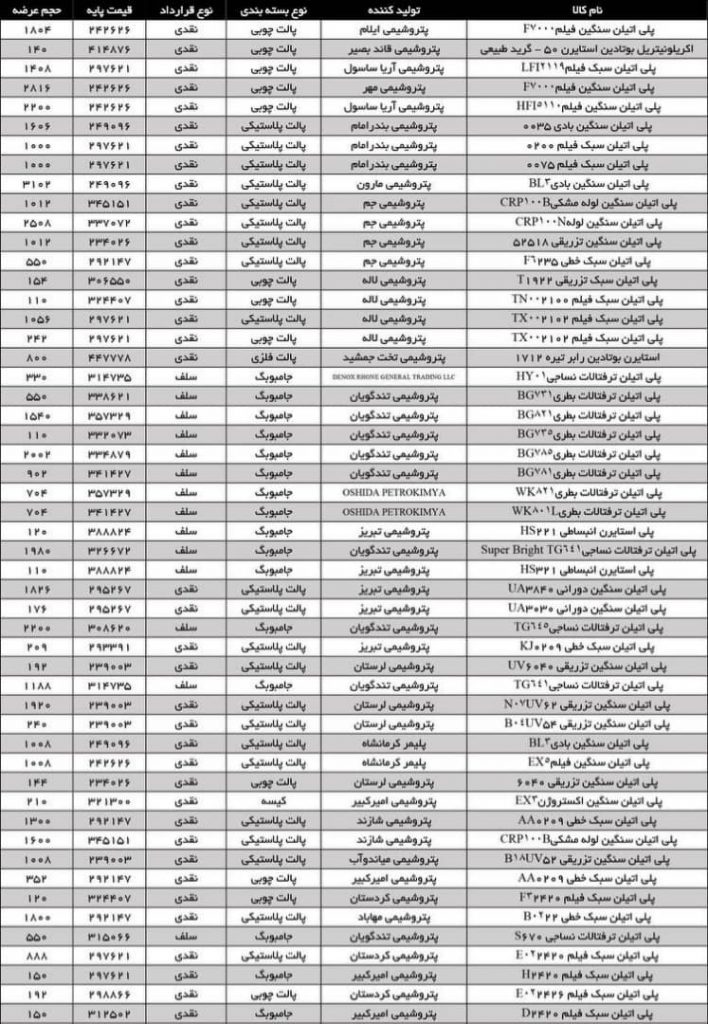 اطلاعیه عرضه مواد پلیمری
