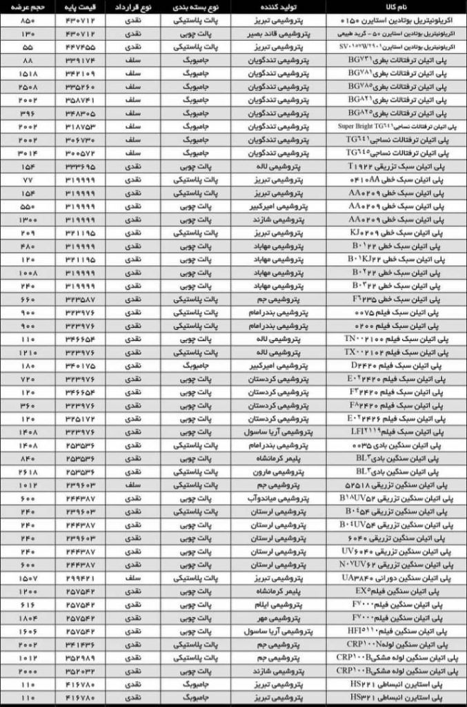 اطلاعیه عرضه مواد پلیمری در بورس کالا در تاریخ ۱۴۰۱/۳/۳۱