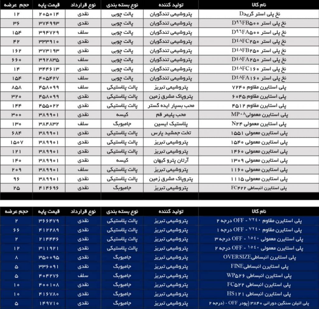 اطلاعیه عرضه مواد پلیمری در تاریخ ۱۴۰۱/۴/۵