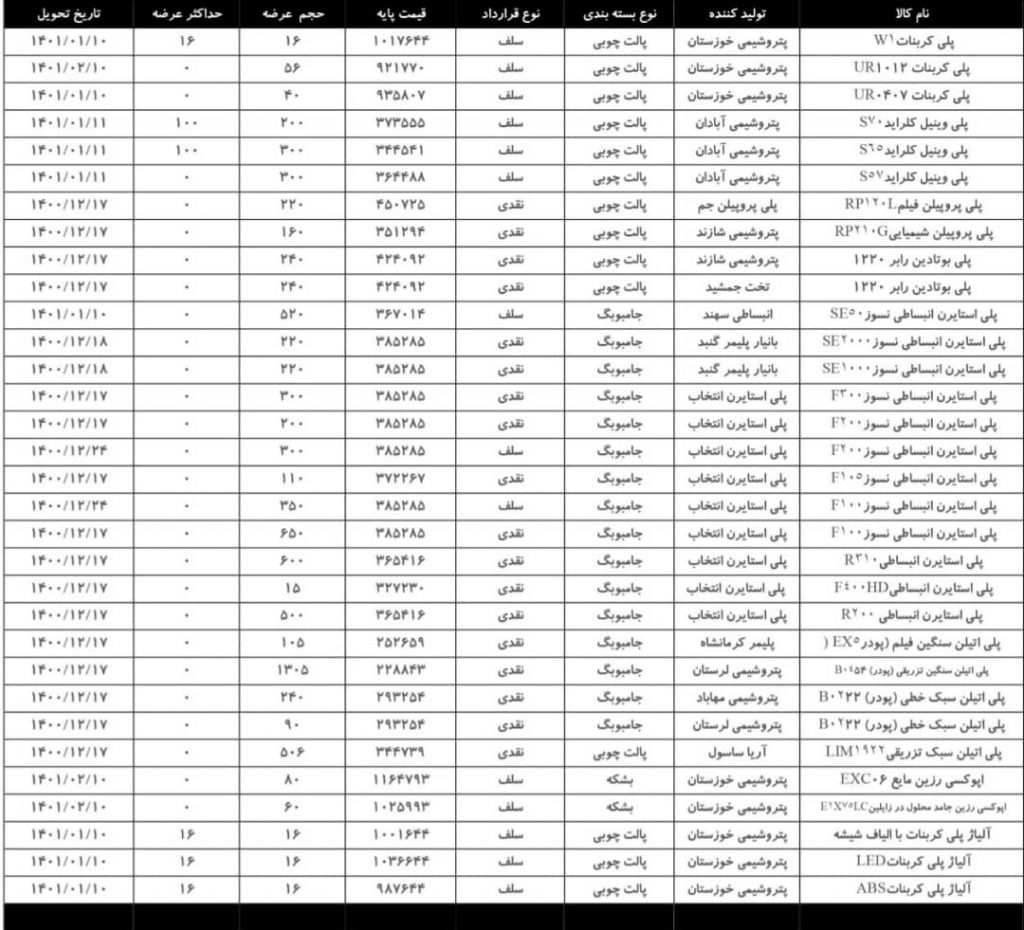 اطلاعیه عرضه و قیمت مواد پلیمری