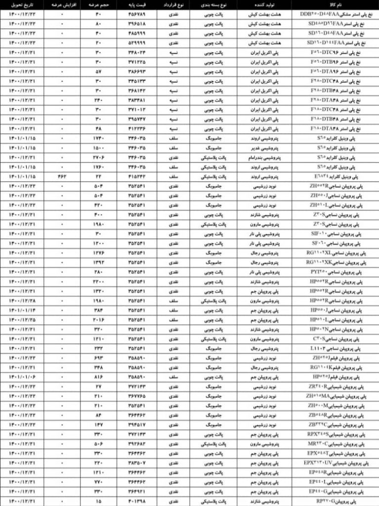 اطلاعیه عرضه و قیمت مواد پلیمری در تاریخ ۱۴۰۰/۱۲/۱۶
