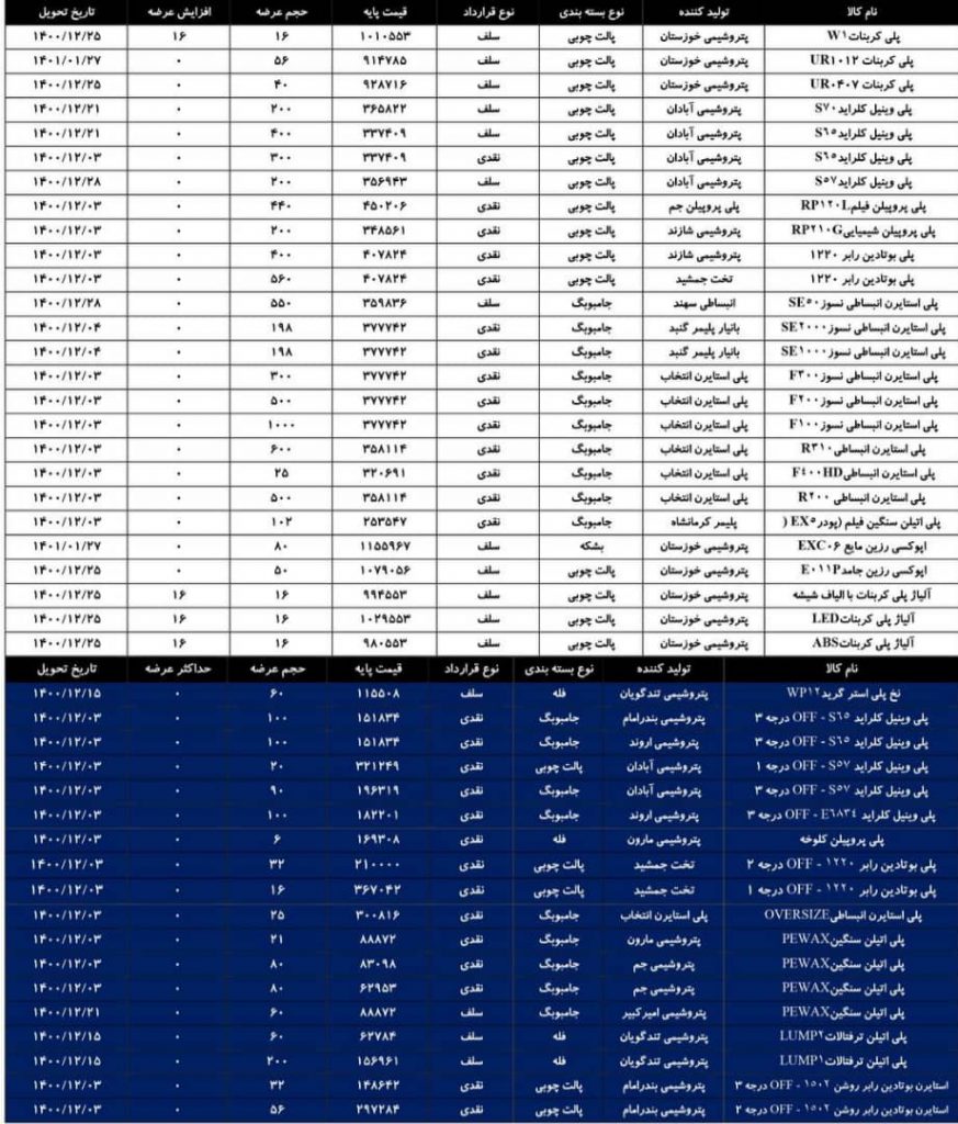 اطلاعیه عرضه مواد پلیمری در تاریخ ۱۴۰۰/۱۱/۳۰