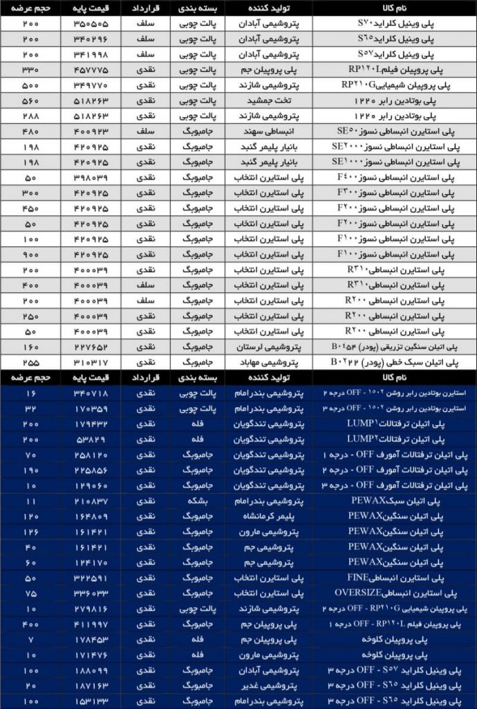 اطلاعیه عرضه مواد پلیمری در ۲۸ خرداد ۱۴۰۱