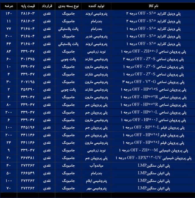 تابلو عرضه آف گرید ها در بورس کالا ۱۴۰۱/۲/۶