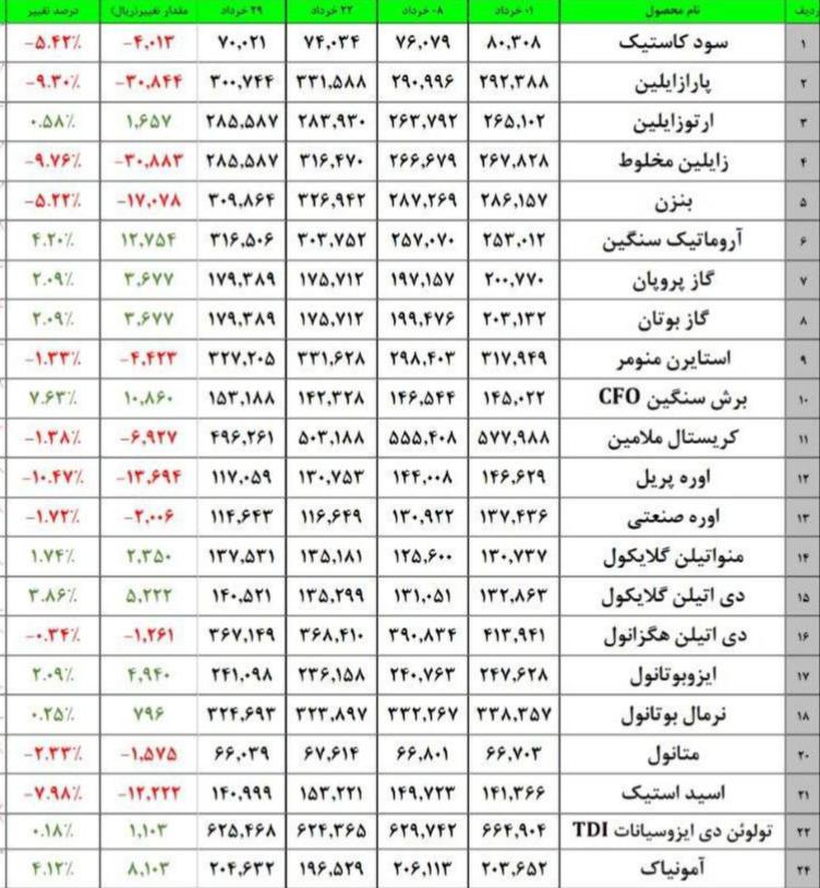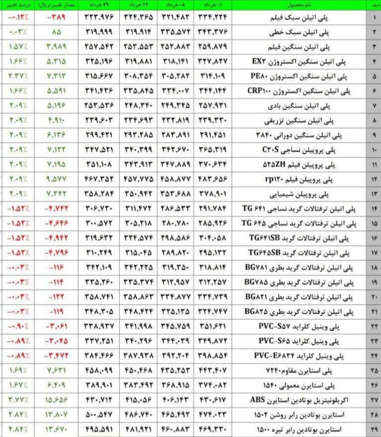 مقایسه قیمت پایه محصولات پلیمری در تاریخ های ۲۲ و ۲۹ خرداد ماه