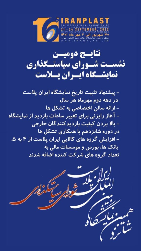 نتایج دومین نشست شورای سیاست گذاری نمایشگاه ایران پلاست